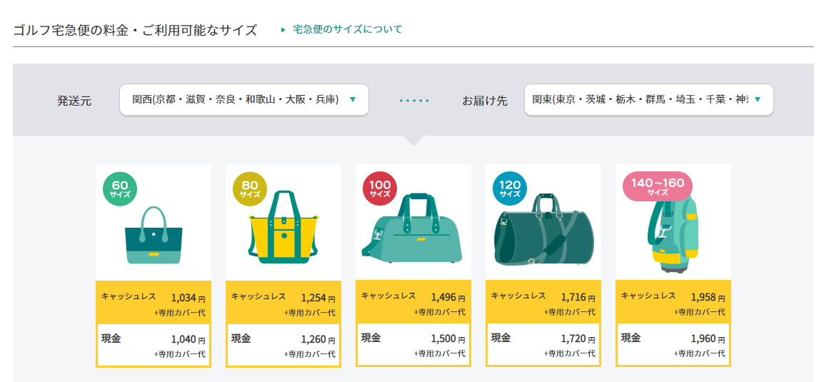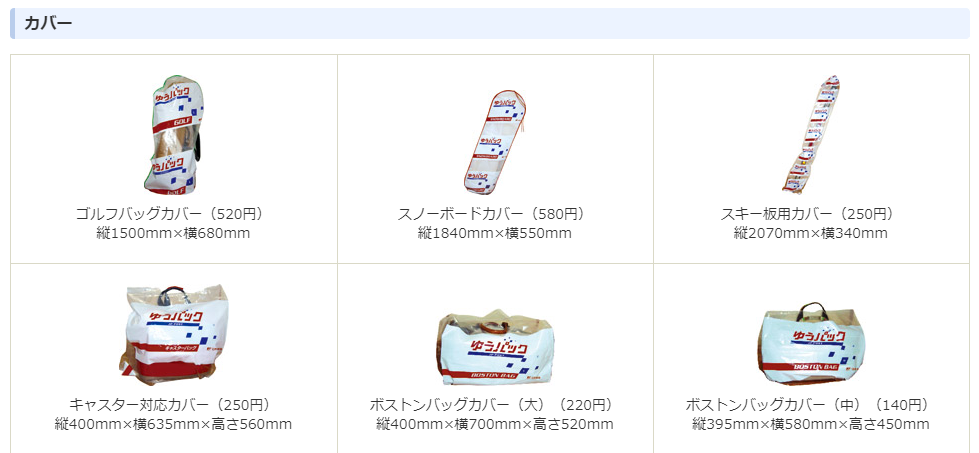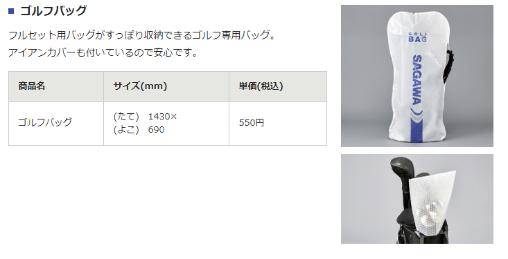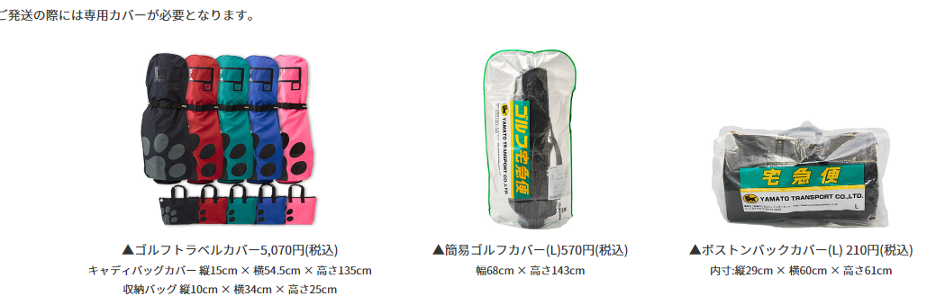 ゴルフバッグは、専用カバーを使用して送る場合にのみ、