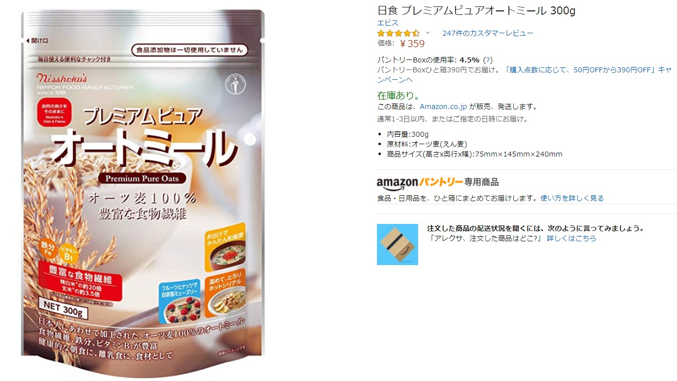 日清さんから発売されている、プレミアムピュア オートミールです。