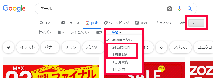 そのやり方は、グーグル検索の画面にあるツールを押します。