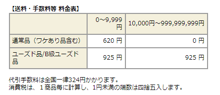 注意点は、送料で1万以下だと、620円~925円かかります。