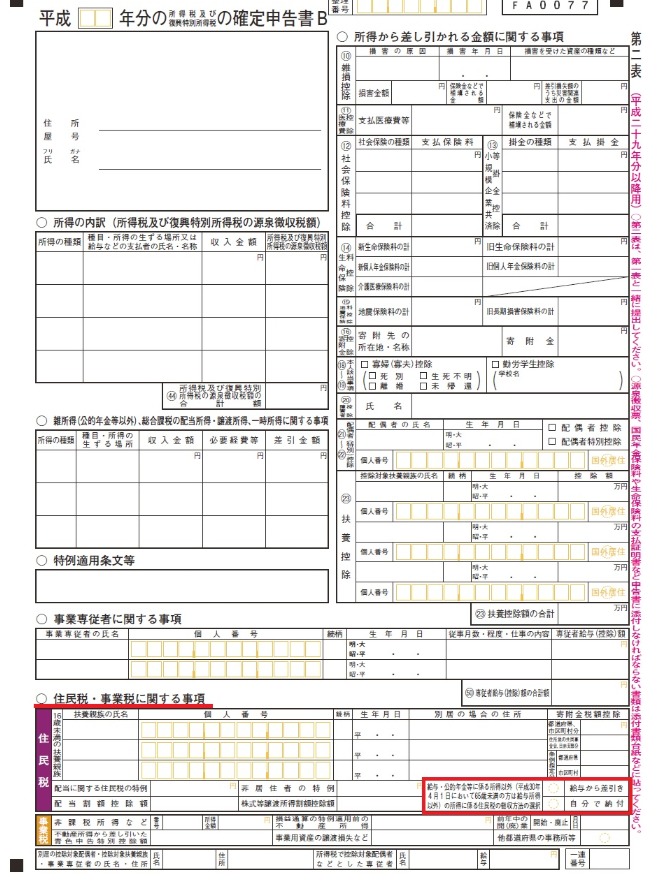 確定申告時に【住民税に関する事項】