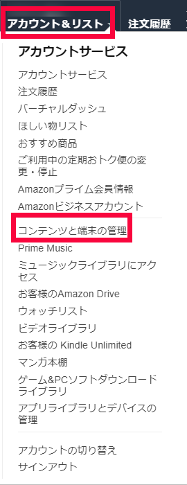 Amazonサイトに入り、アカウントを押してください。