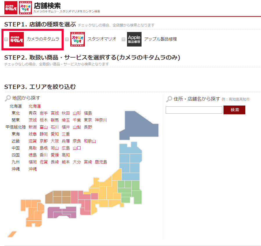 →カメラのキタムラの店舗検索