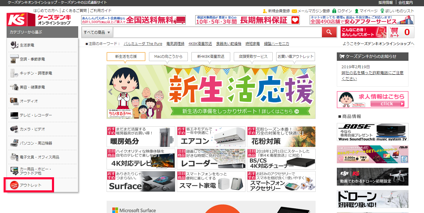 ケーズデンキオンラインショップのアウトレットコーナーで複数個購入する方法