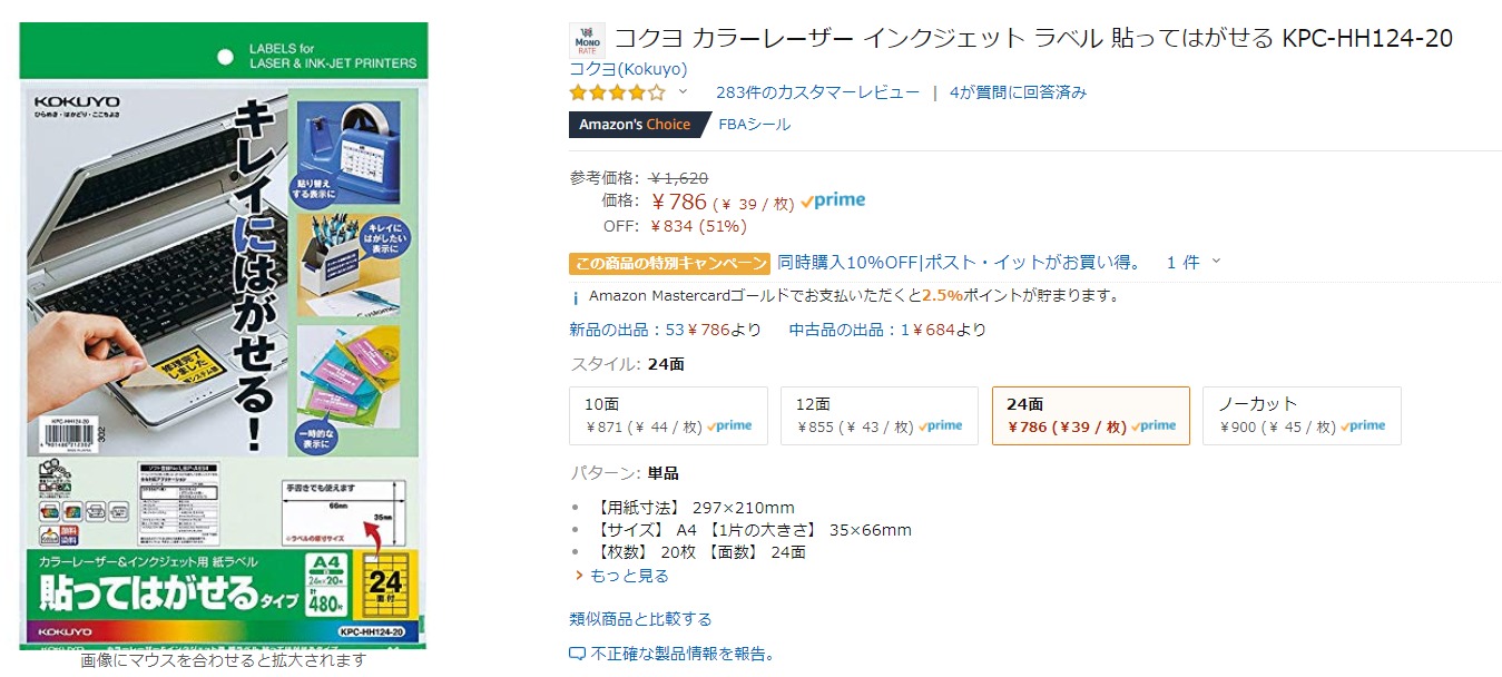 Amazon直販同様に剥がしやすい薄利タイプのシールを