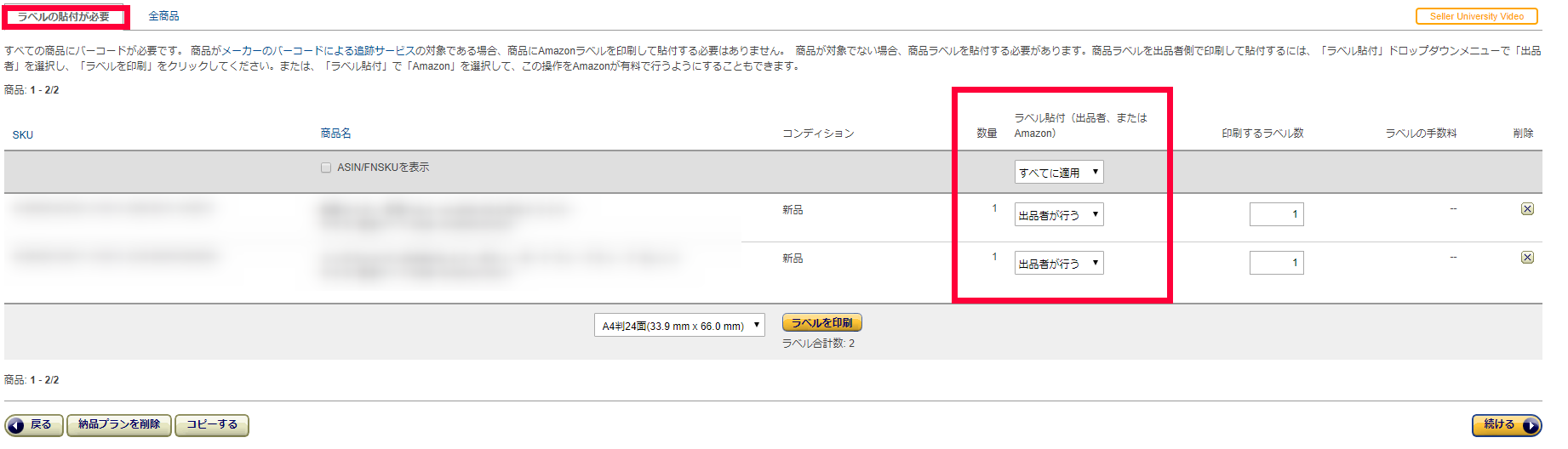 Amazon FBA 商品ラベル貼付サービスの利用方法