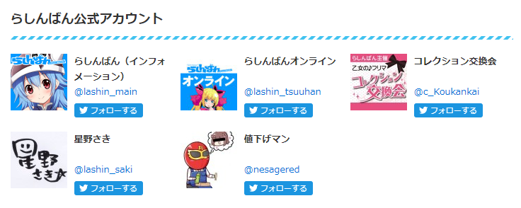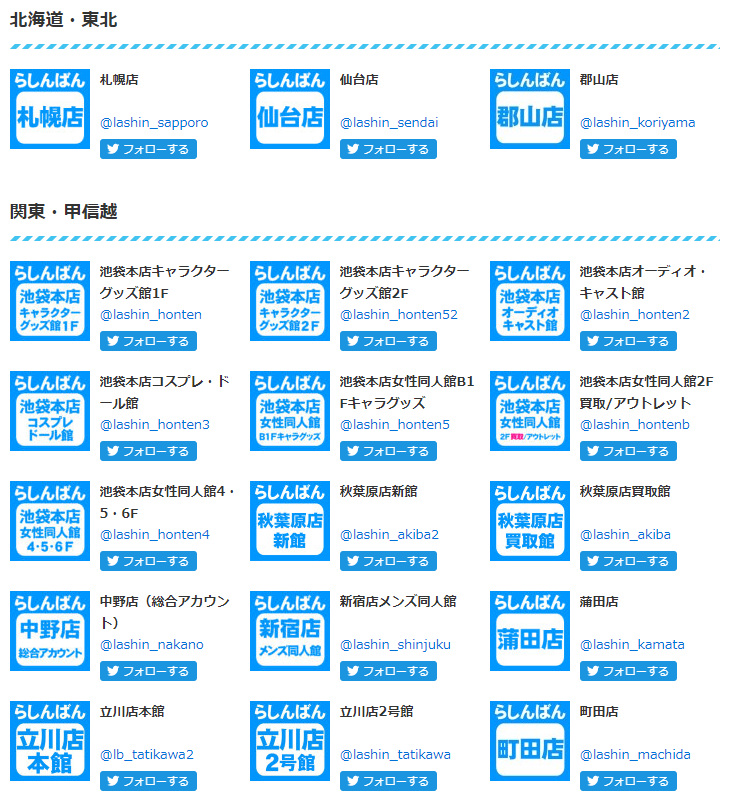 らしんばんは、各店舗のTwitterがあり、セール情報やイベント情報などをツイートしています。フォローしておきましょう。