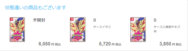 商品のコンディション表示は、「未開封」・「A」・「B」の3種類です。