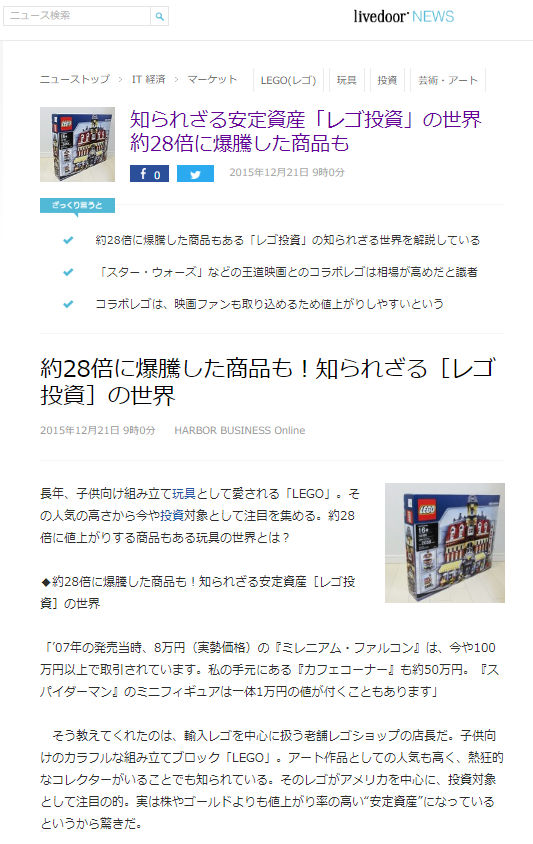 賢明なあなたは、ぜひ、レゴ投資をして収益源を