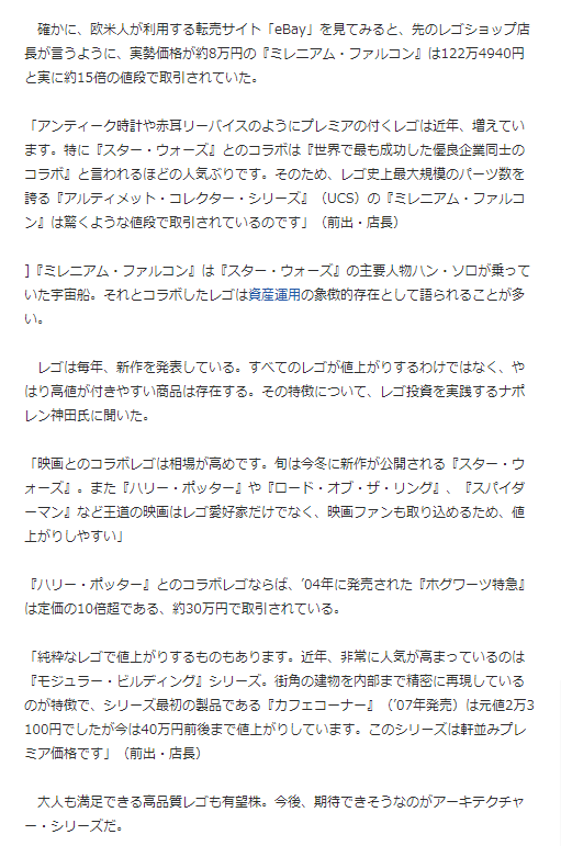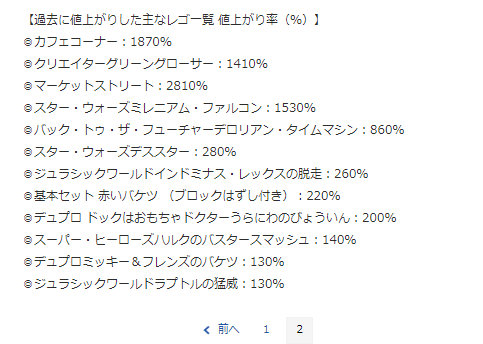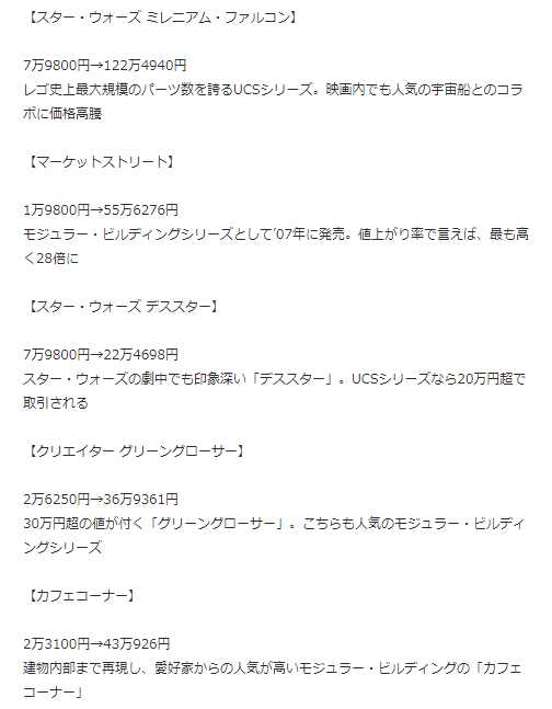 レゴが儲かるのは、生産終了し商品が簡単に手に入れられなくなった後です。