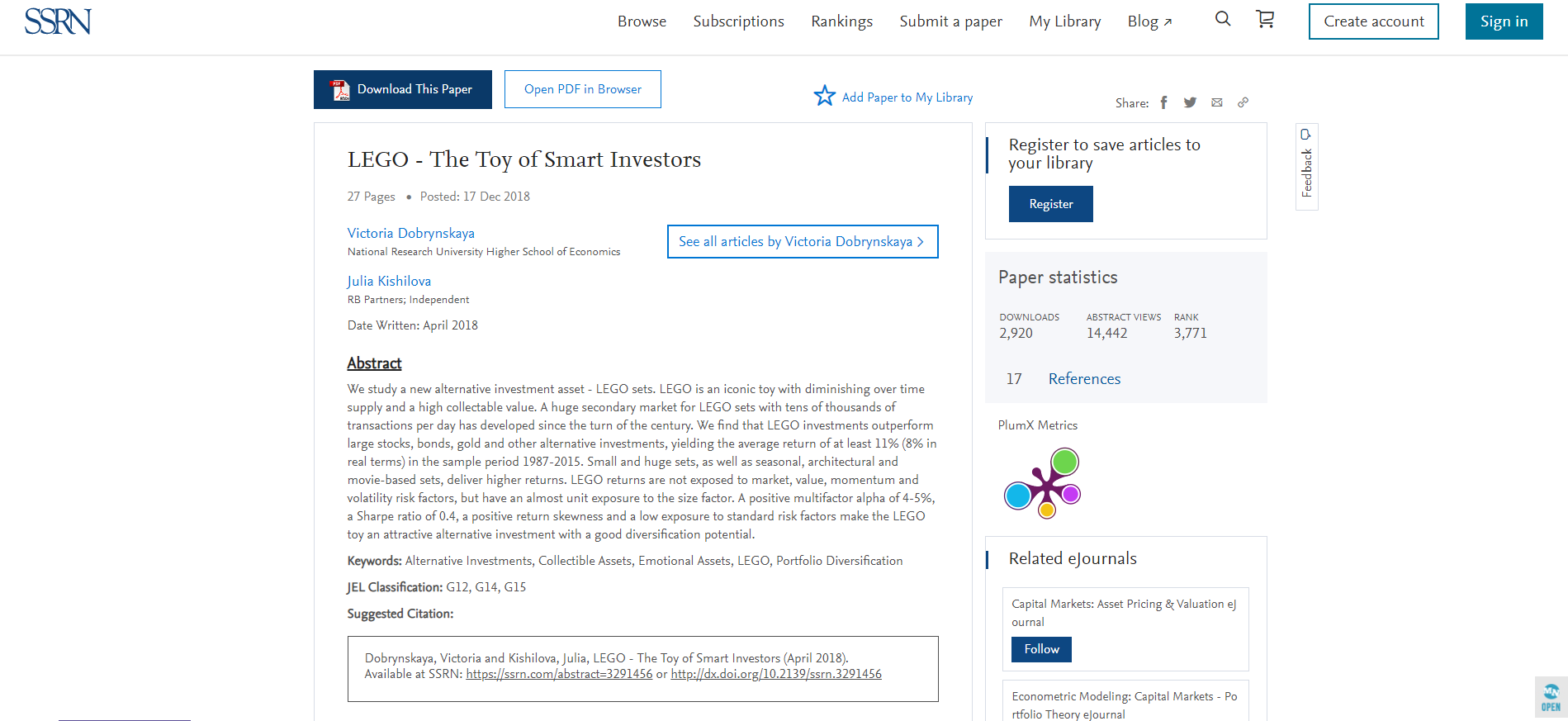 レゴ投資は、ロシア国立研究大学の調査結果の通り、