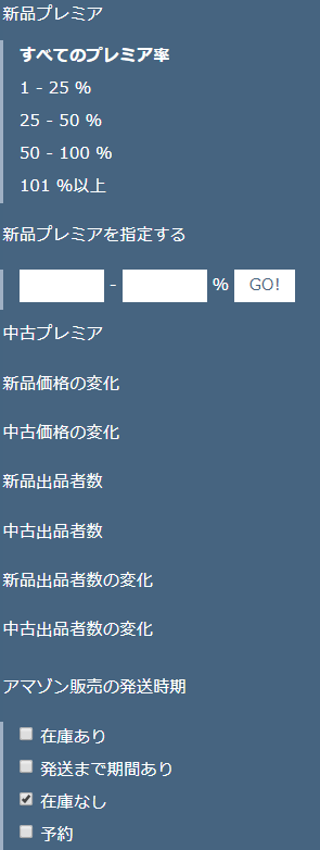 モノレートはキーワードを元に、発売日や価格やプレミア度を
