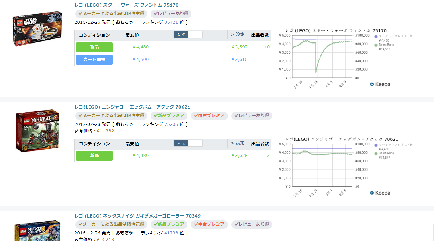 →レゴ投資のリサーチに使えるモノレートのサイト