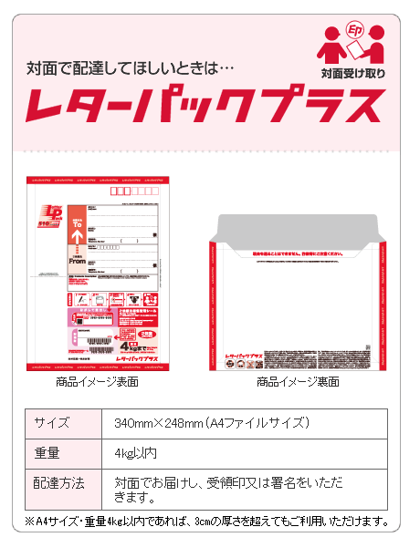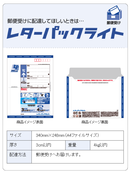 A4サイズ・4kgまで全国一律料金で、ポスト投函でも