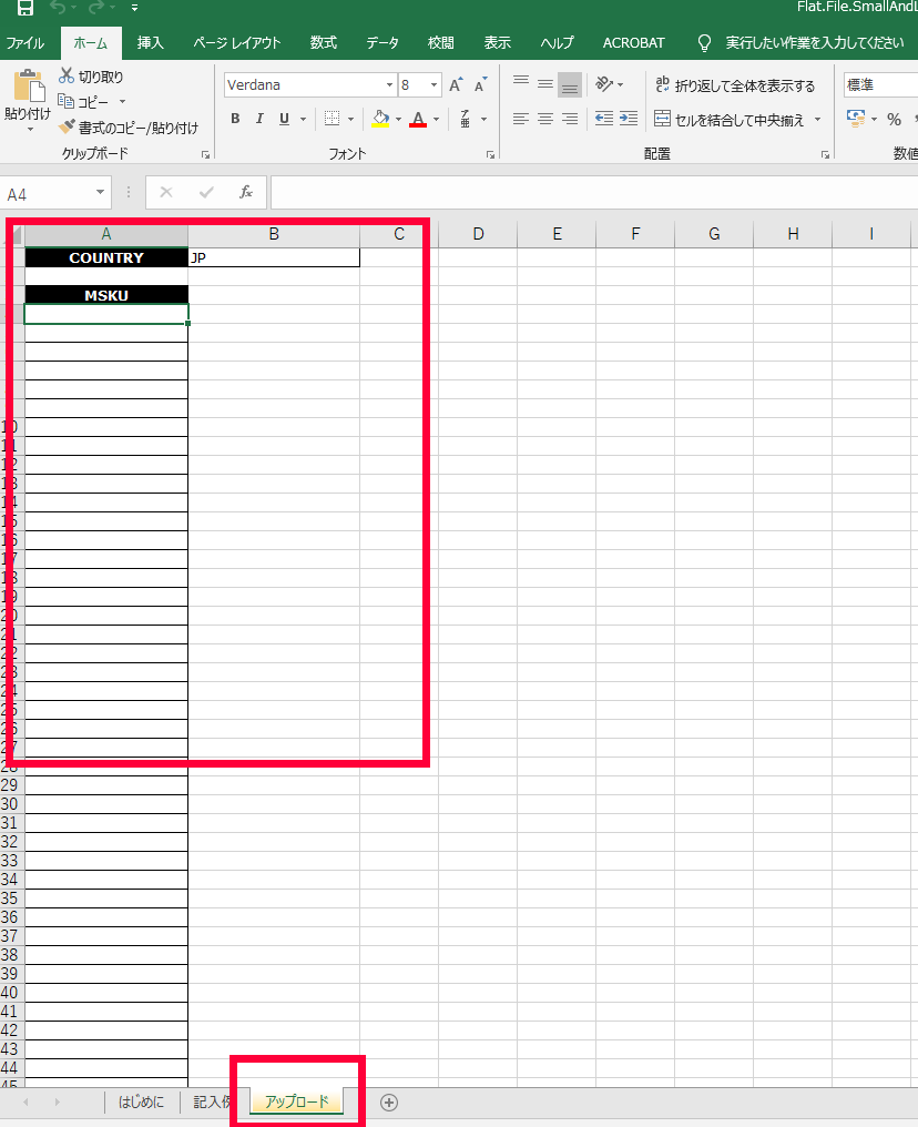 MSKUの欄にSKUを入力します。