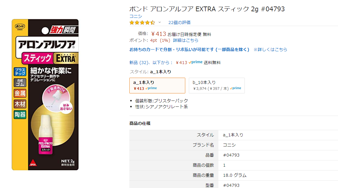 とりあえず、少量塗布ができるアロンアルファのスティック商品にしました。