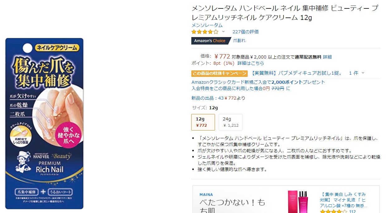 『ハンドベール』の使用と『ネイリッチ』のサプリを飲みましょう。