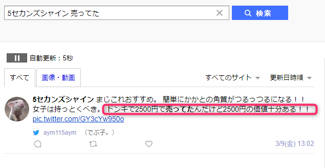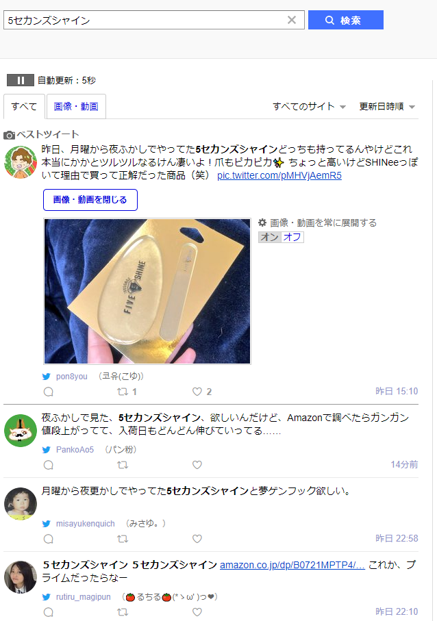 これはリアルタイム検索を使っての