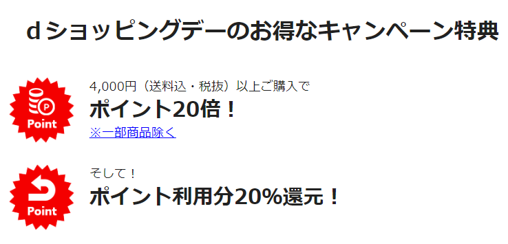 上記の日に買い物するとポイント20倍