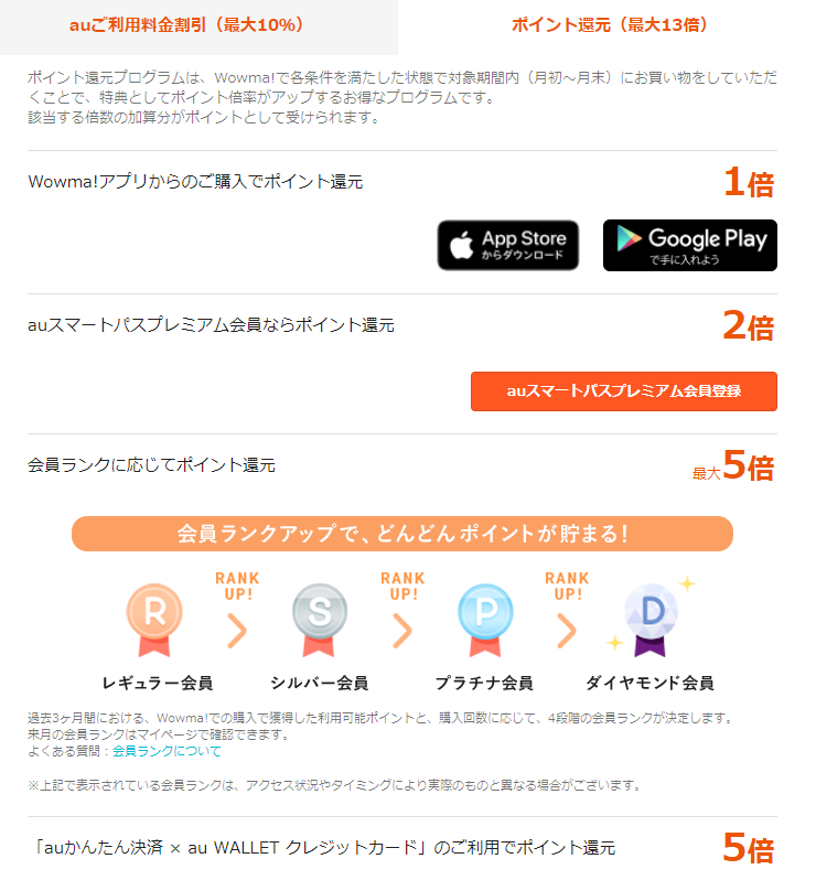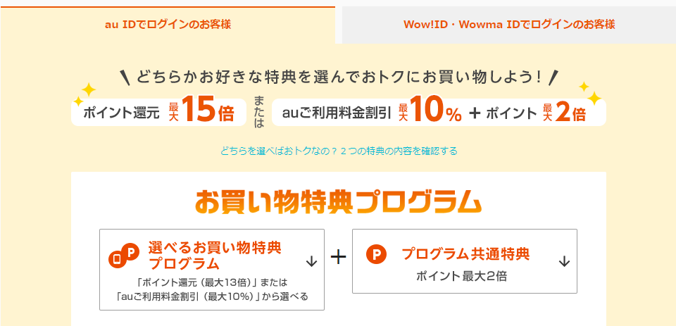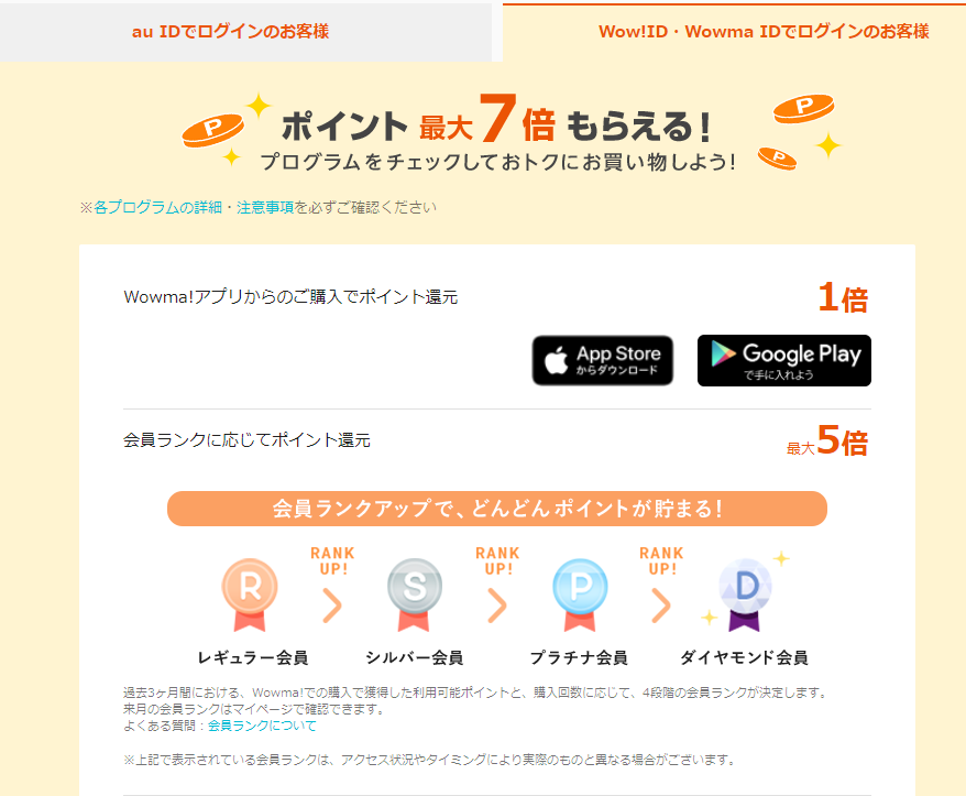 auIDで登録している場合は、ワウマでのポイント還元が最大15倍に