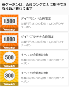 会員ランクに応じてもらえるクーポンが変わります。