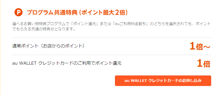 ・さらにau WALLETクレジットカードをご利用で = 1倍(au IDのみ)
