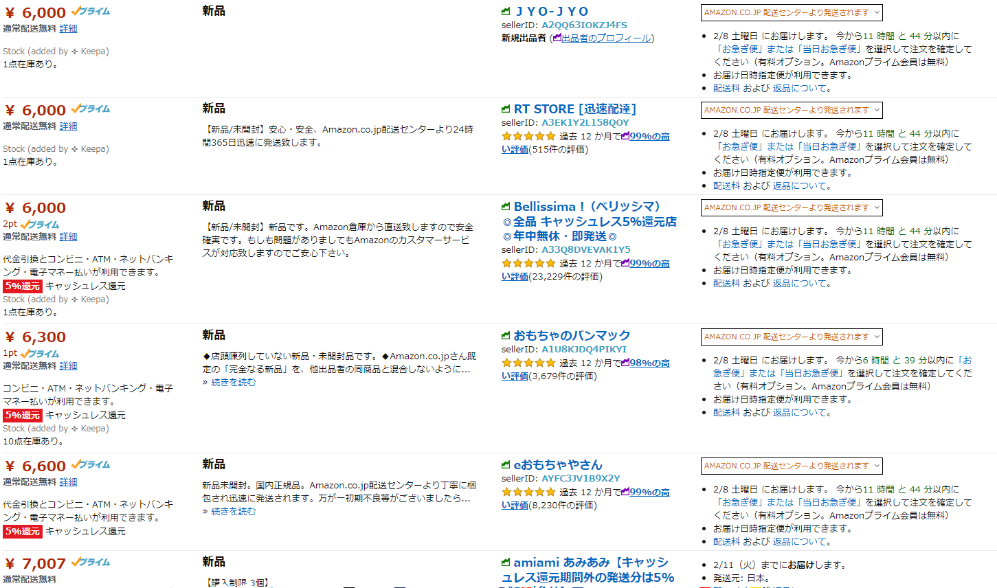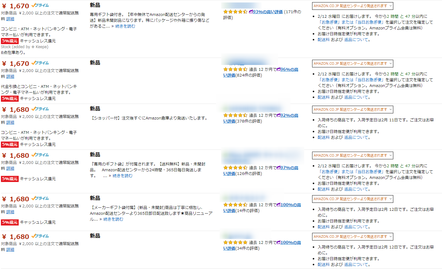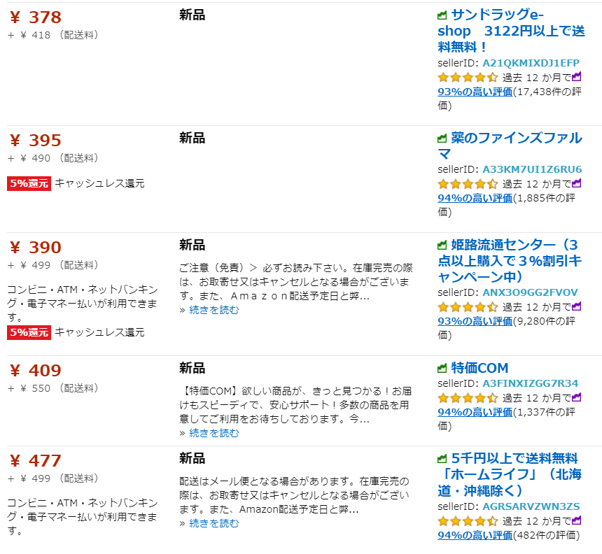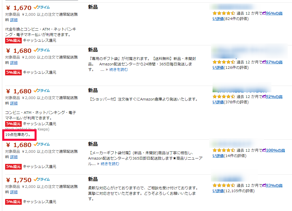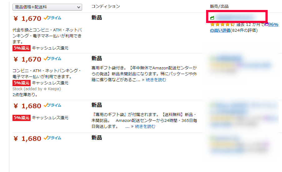 続いて、出品者一覧で実際に競合になる出品者を確認しましょう。