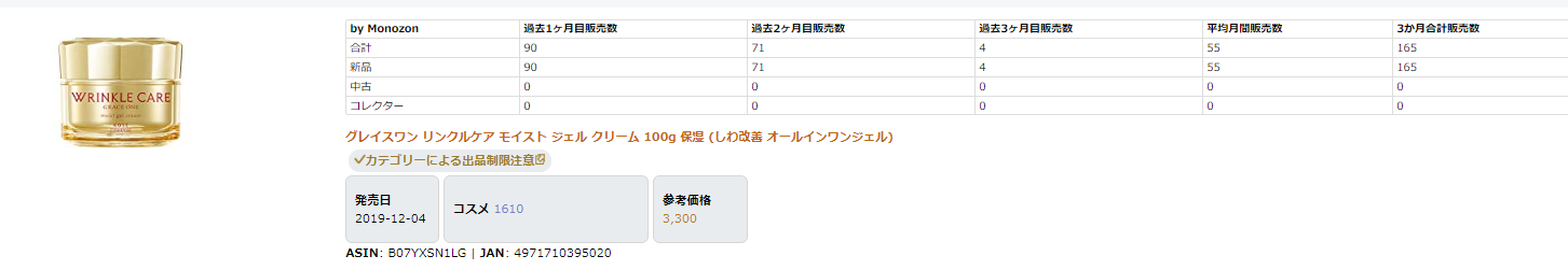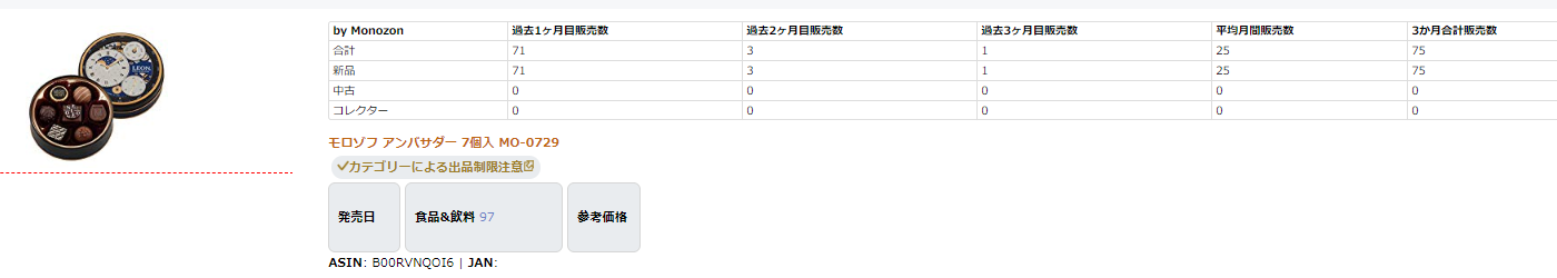 1ヶ月どのくらい売れているのかざっくり把握しましょう。