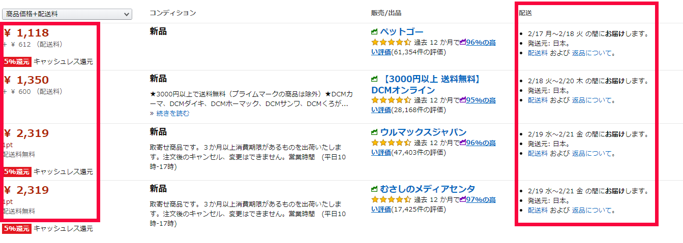 商品ページにある真ん中の価格だけで判断しないようにしましょう。