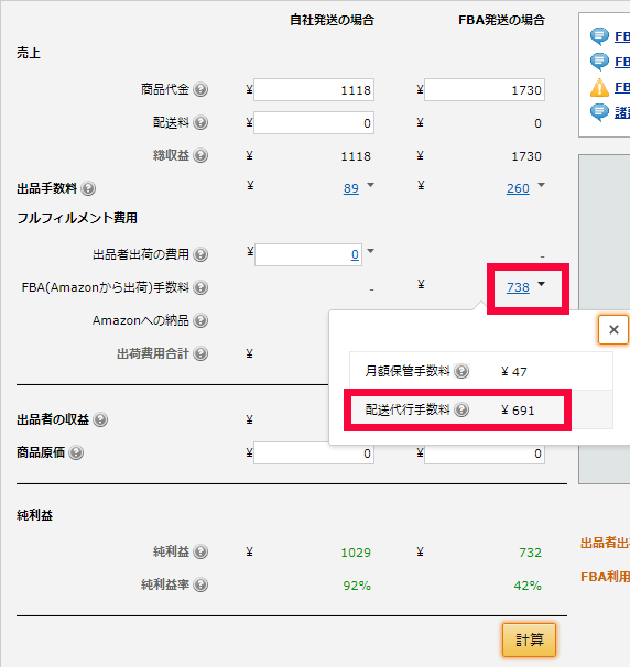 カート取得している出品者が自己発送の場合でFBA販売する時の価格設定