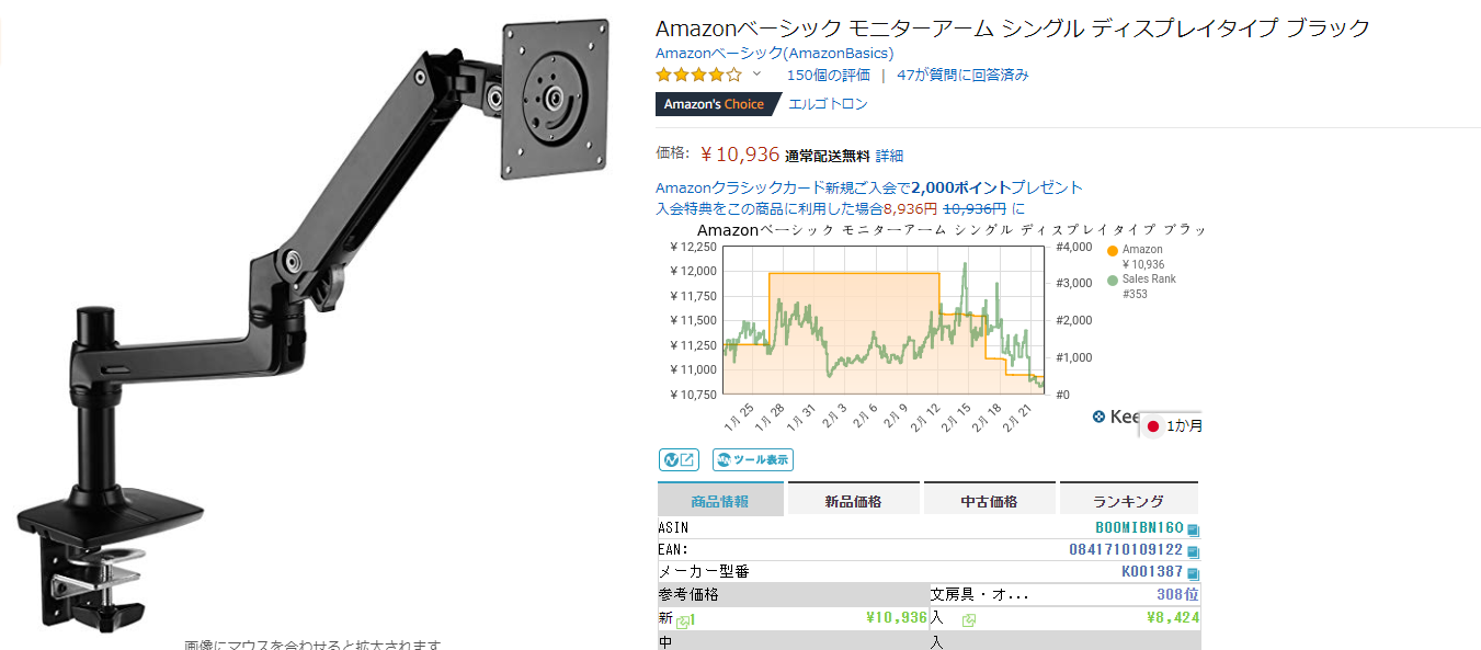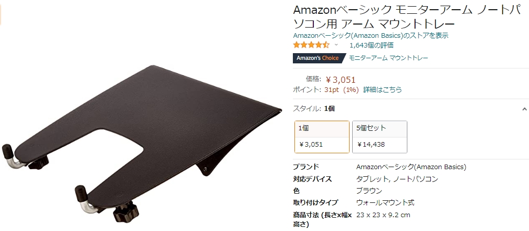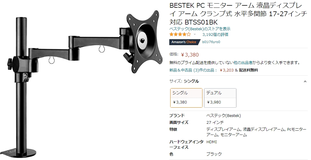 モニターアームはAmazonや楽天市場にたくさん出品されています。