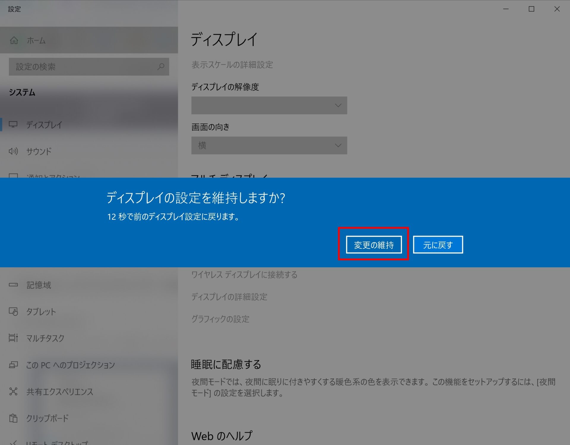 3.変更の確認画面が表示されるので、「変更の維持」をクリックします。