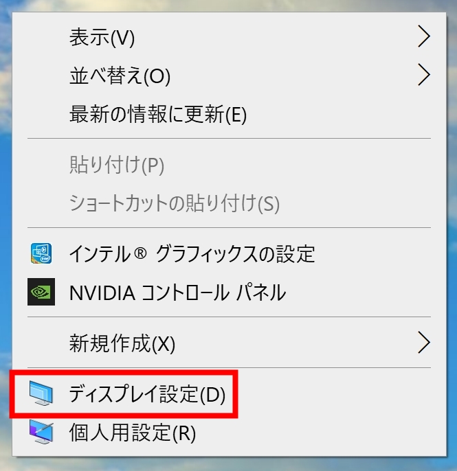 1.Windowsのデスクトップを右クリックし、ポップアップ表示されるメニューから「ディスプレイ設定(D)」をクリックします。