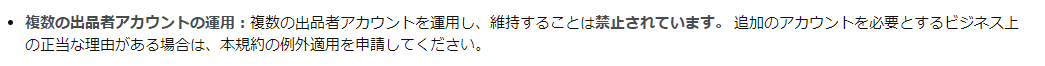 複数の出品者アカウントを運用し、維持することは禁止すると