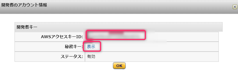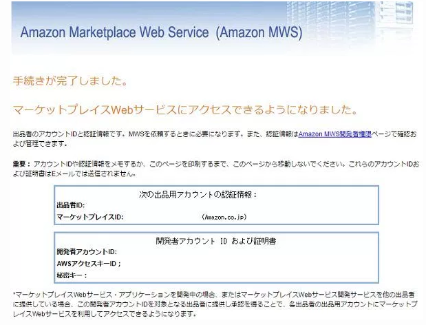 これで「出品者ID」「AWSアクセスキー」「秘密キー」の