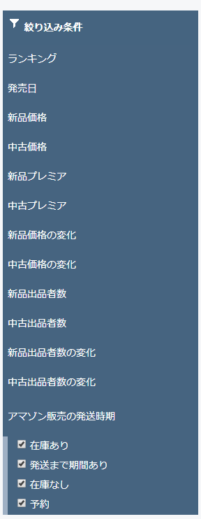 今、Amazon切れやプレミア商品を抽出する方法としては、