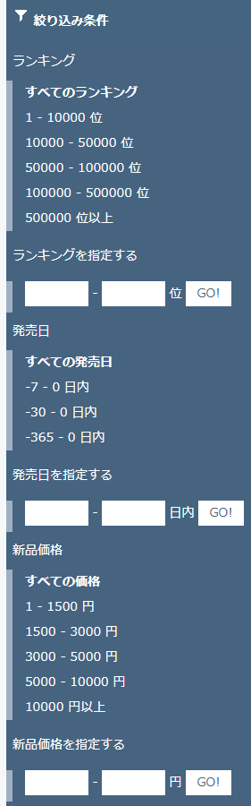 あるいは、Amazonが最初から取扱のない商品が多いです。