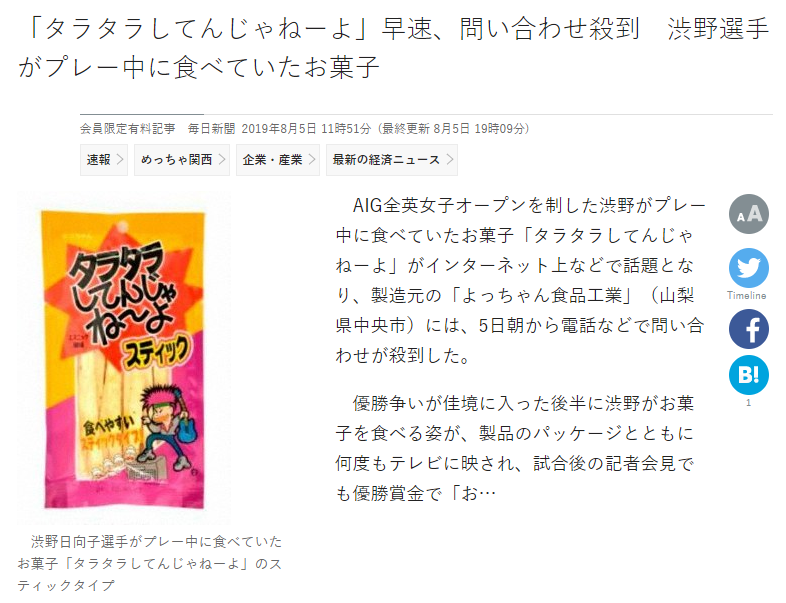 試合中に食べていたお菓子がテレビやネットで話題になり、