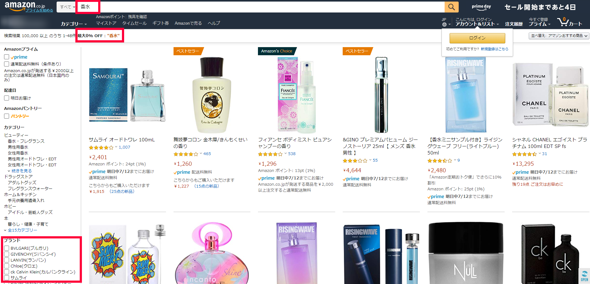 Amazonサイトで香水と検索しましょう。