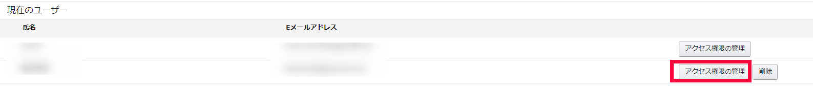 アクセス権限の管理を押すと、外注さんが触れるところの