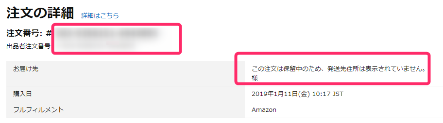 保留の間は、顧客情報(購入者の名前、住所、電話番号)が見れません。