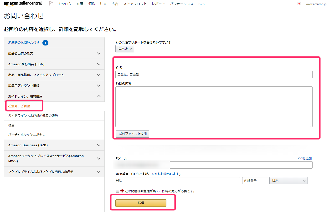 悪質だと思われる保留が確認できたら、Amazonカスタマーへメッセージを入れる