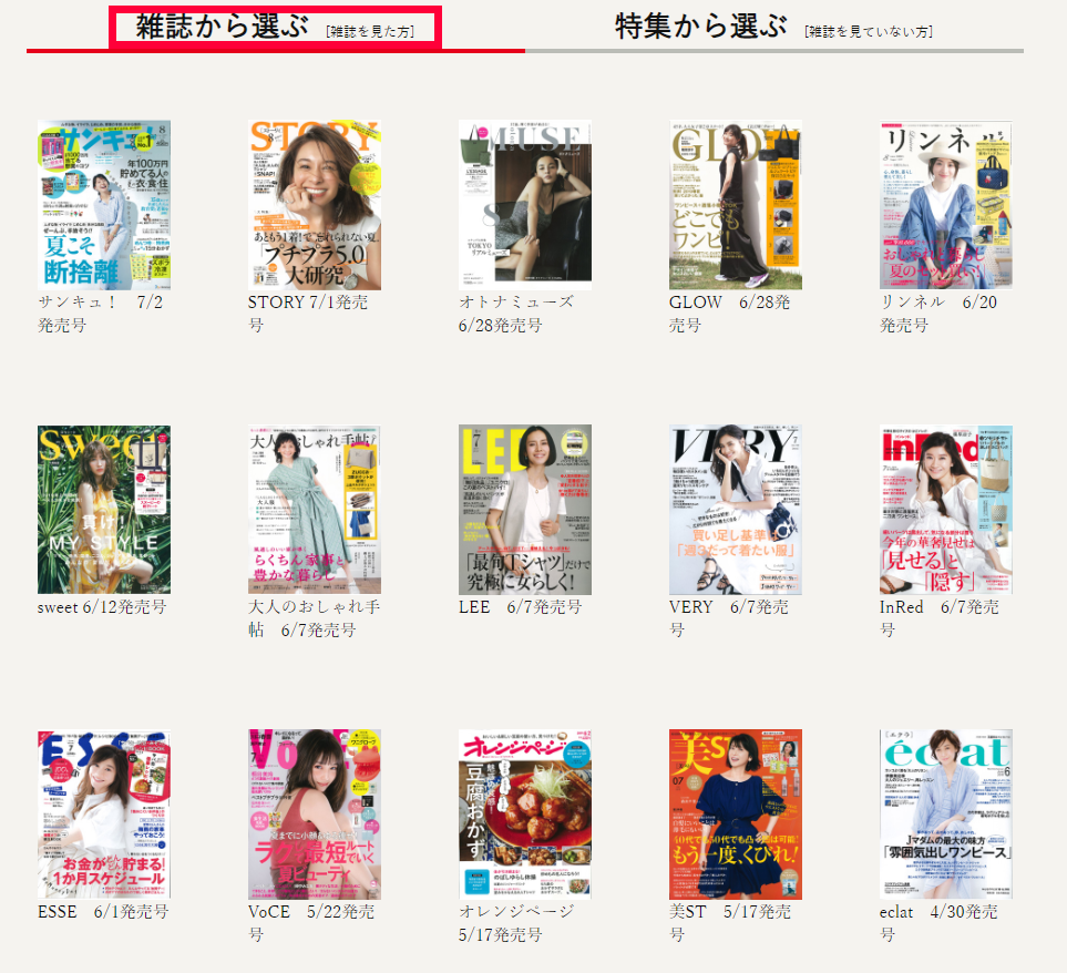 女性雑誌の特集が組まれている商品の紹介をしているサイトで
