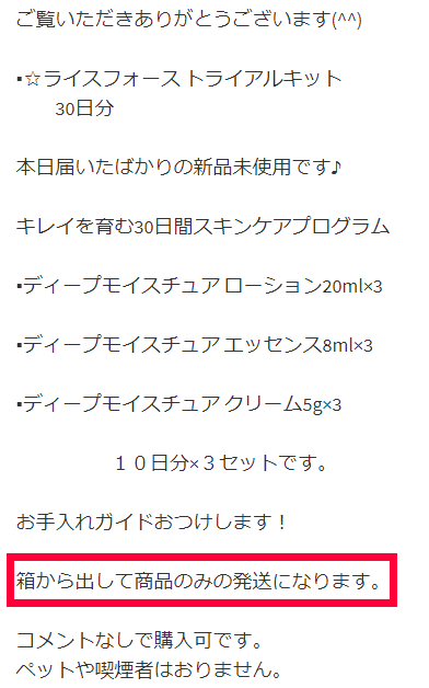 箱から商品を出して、送料代を安くして送れるようにすることです。