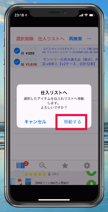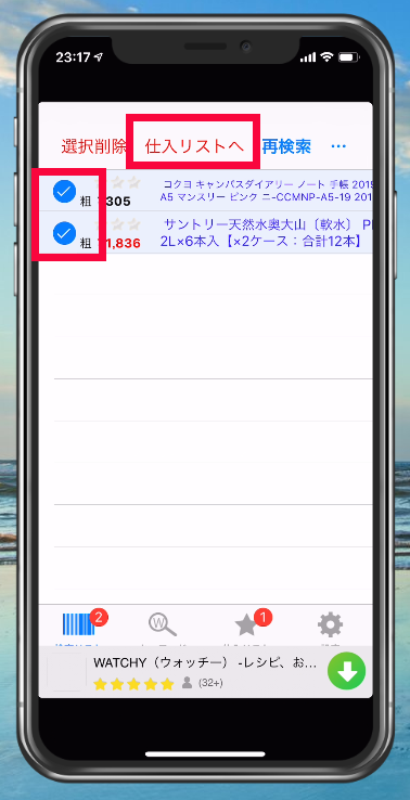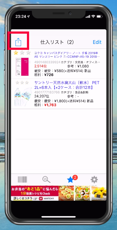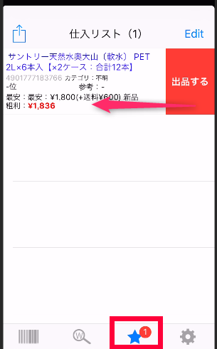 その後、真ん中にある仕入れリストへのボタンを押してください。