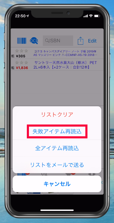 商品をスキャンして読み込みがちゃんとできなかった場合は、