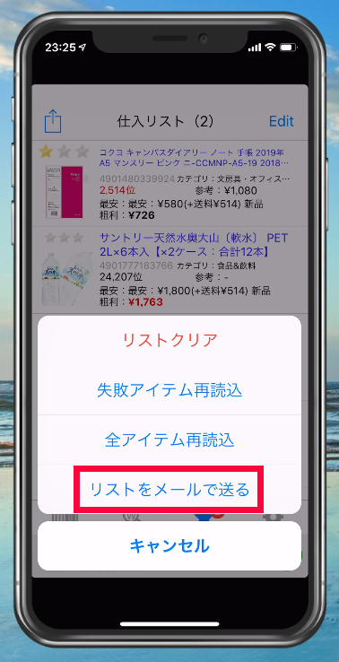 メールでそのリストを飛ばして電脳で商品を探すことも