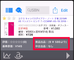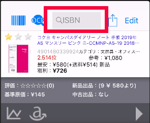 画像スキャンができない場合でかつバーコードがわかる場合は、