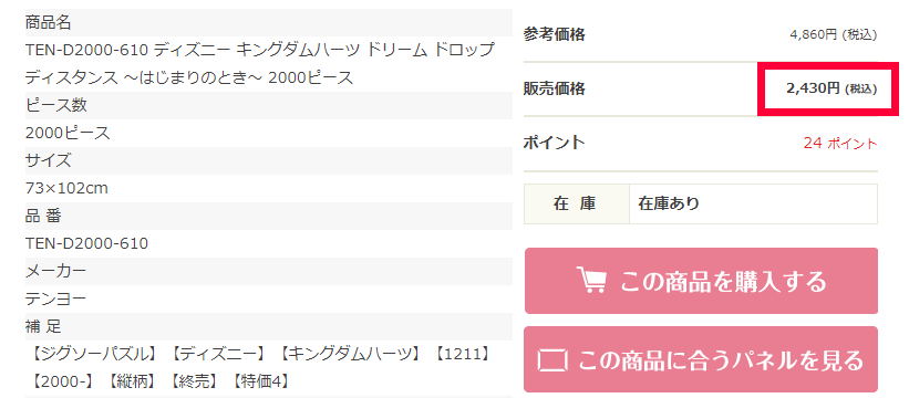 パズルは特別に大きくなければ、在庫保管料が安いため