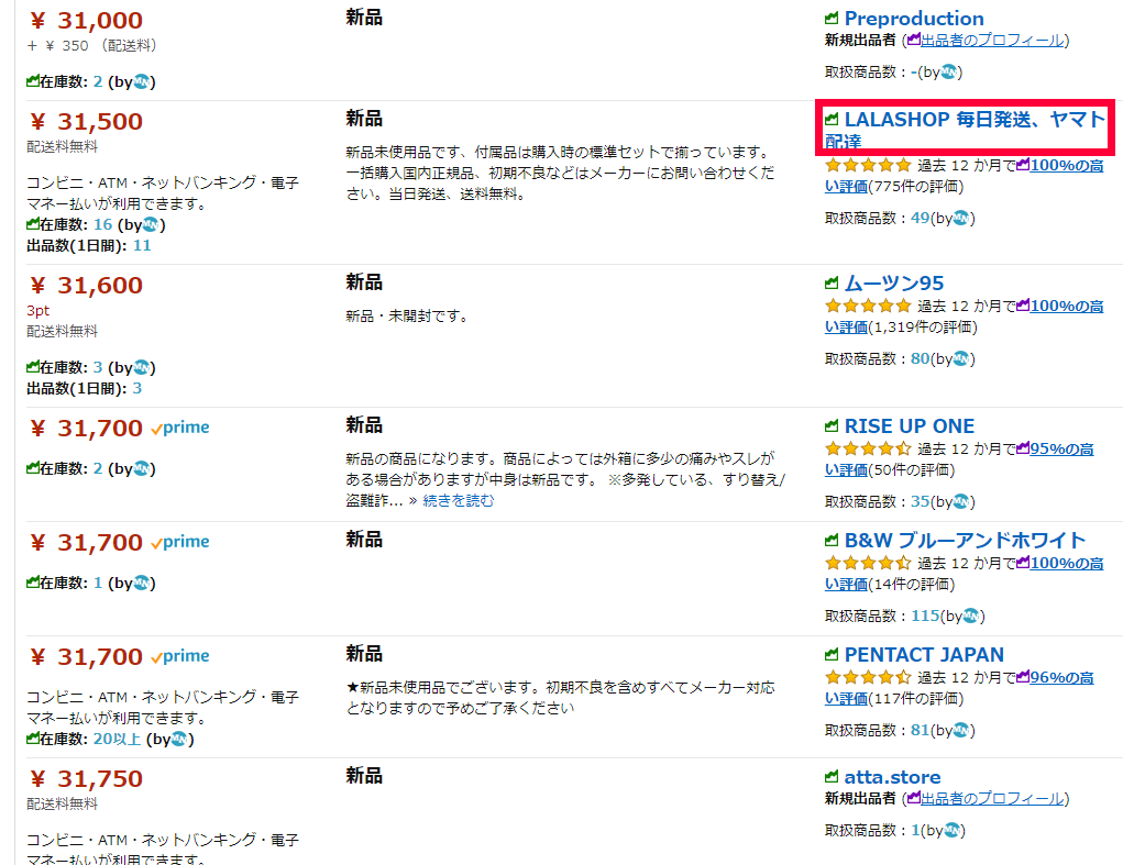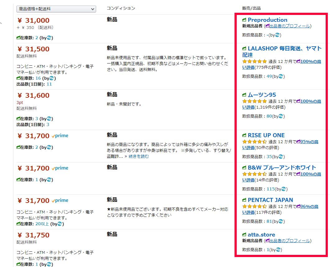 Amazonの出品者の一覧を見て転売屋だと、